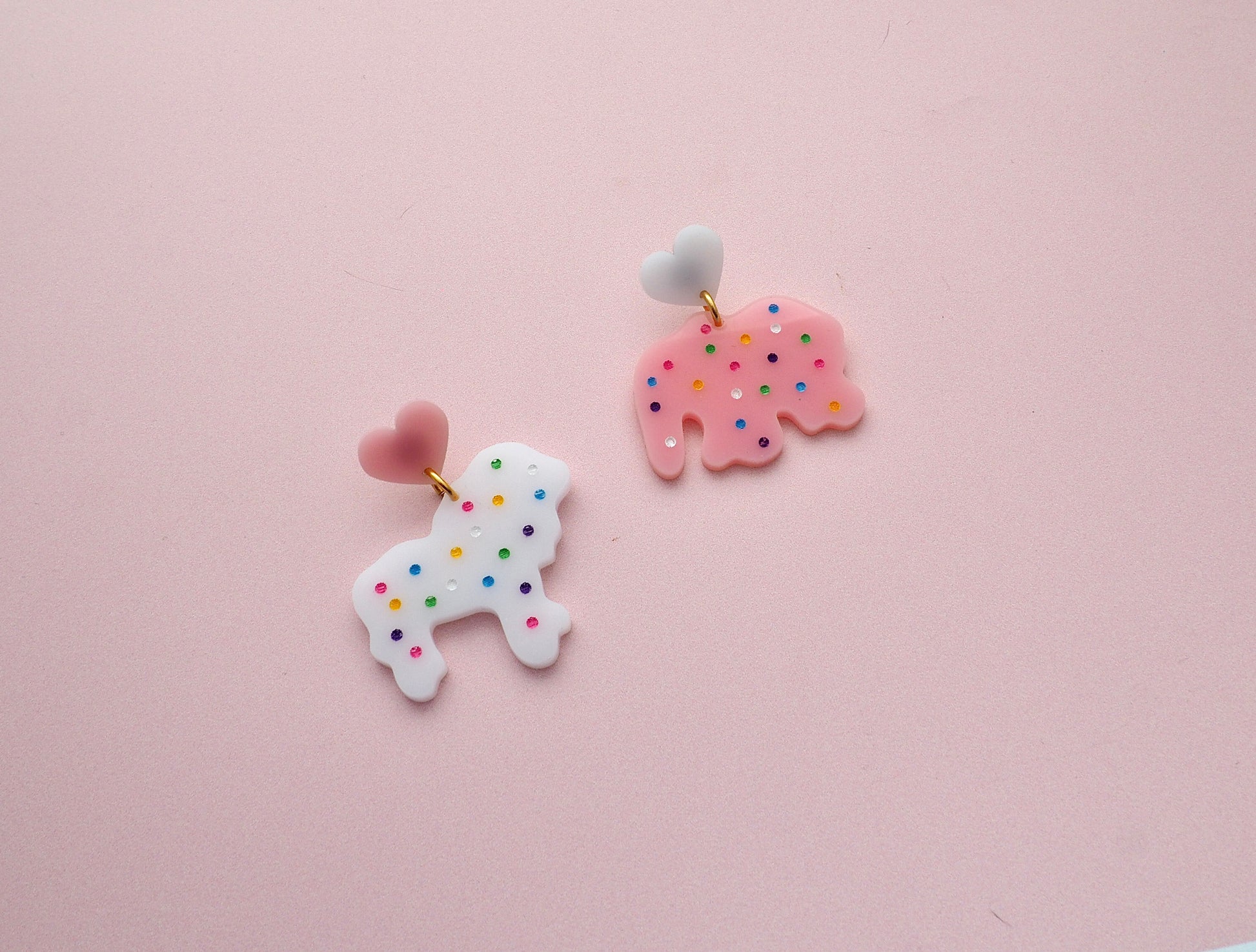 Add a touch of childhood nostalgia to your outfit with these cute circus animal cookie earrings. Guaranteed to bring a smile to your face (and anyone who sees them)!