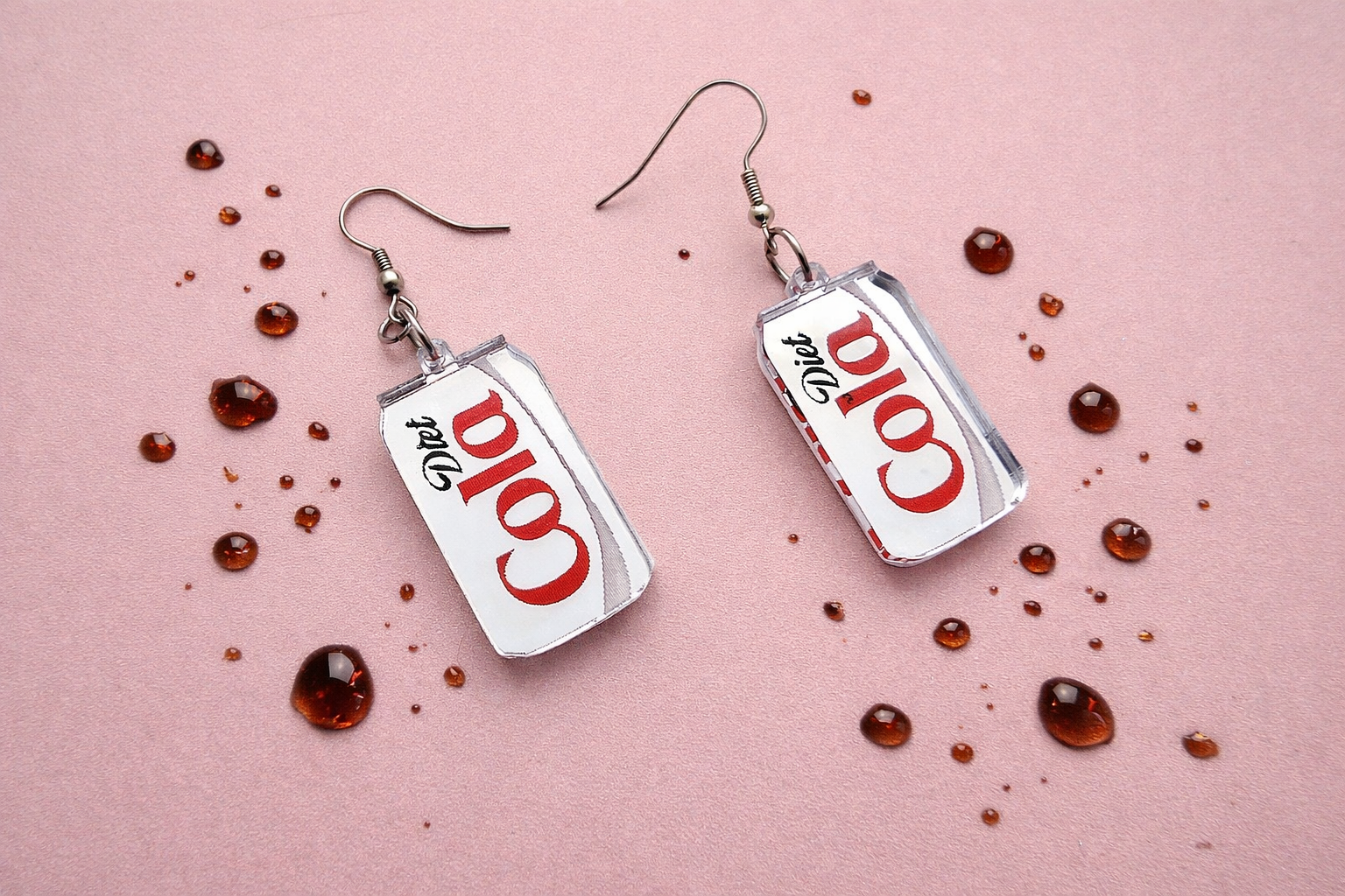 Get your caffeine fix without the calories with these playful Diet Cola acrylic earrings. Perfect for adding a quirky touch to any outfit, these earrings will make you stand out and show off your unique sense of style.